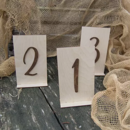 Drewniane numery na stół, które pomogą gościom weselnym w znalezieniu swojego stolika a także będą dodatkową dekoracją.