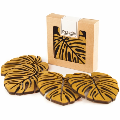 Podkładka pod kubek Monstera 4 szt. – dąb ciemny