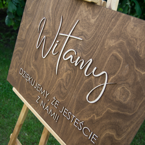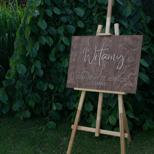 Drewniana tablica która będzie nie tylko miłym gestem powitalnym gości weselnych, lecz również niewątpliwie świetną dekoracją.